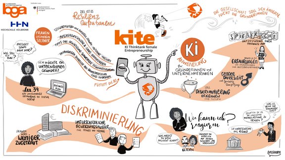 Im Projekt KITE II liegt der Fokus auf der Entwicklung und Implementierung einer KI-gestützten, gamifizierten Anwendung, die Gründerinnen dabei unterstützen soll, resilienter im Umgang mit diskriminierenden Erfahrungen im Gründungsprozess zu werden. Zum Beispiel durch Vorbereitung auf schwierige Situationen in einem simulierten bzw. spielerischen Kontext. Dabei soll ein innovatives Verfahren zur Trainingsdurchführung entwickelt werden, das sicherstellt, dass die zugrundeliegenden Algorithmen der Mustererkennung nicht nur diskriminierungsfrei sind, sondern ermöglichen, Diskriminierung aufzuspüren und etwa in folgende Trainings zu integrieren.